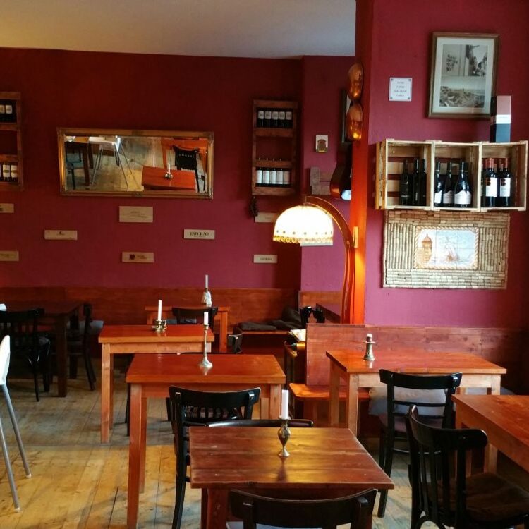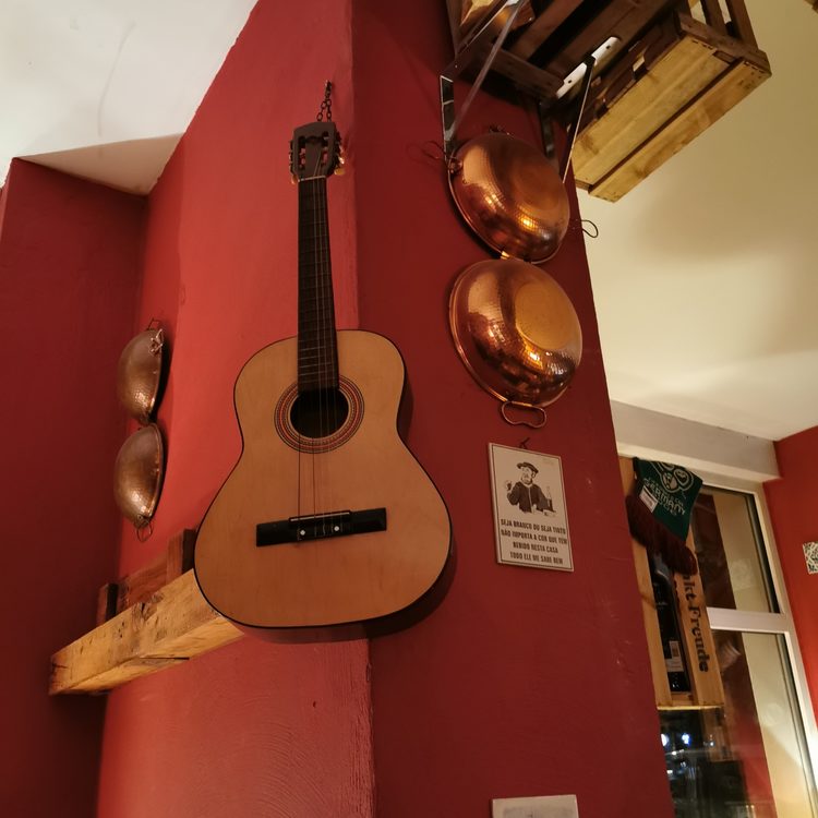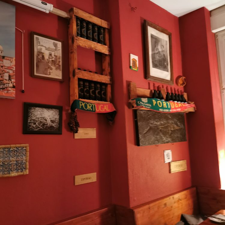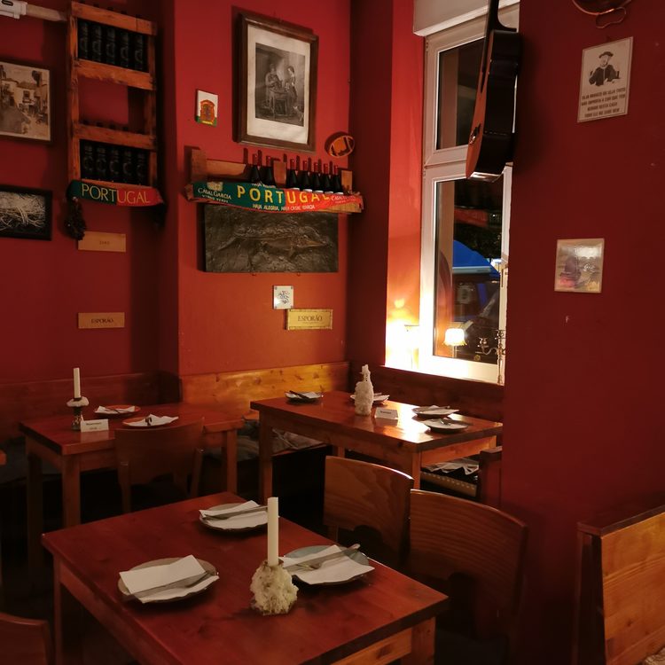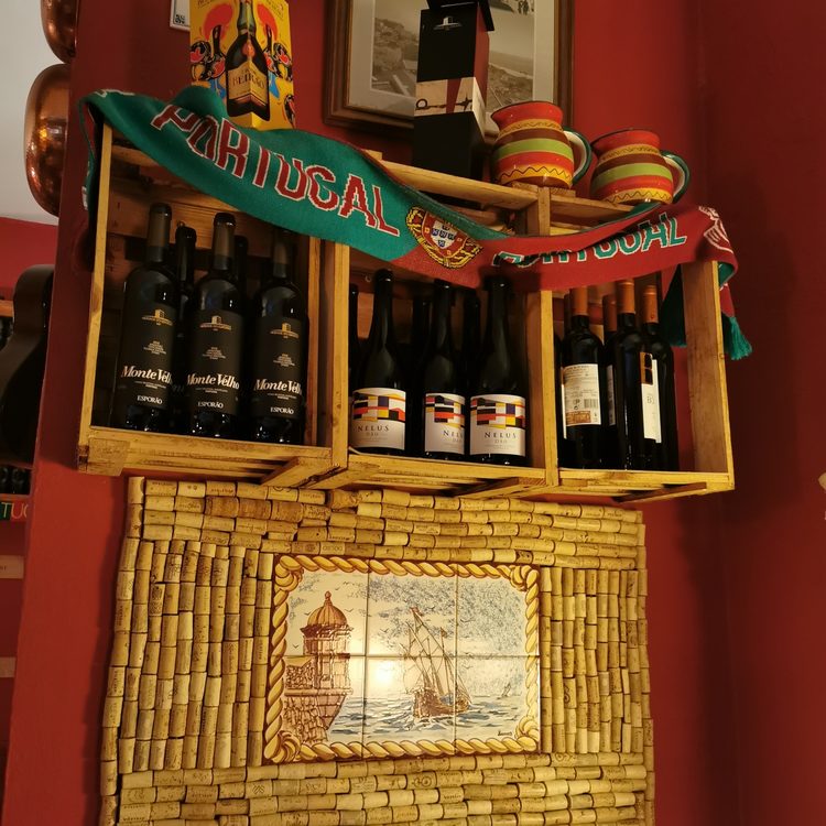 Unsere Gäste lieben auch die liebevoll zubereiteten Baguettes, Tostas Mistas und die typisch portugiesischen Croissants belegt mit Käse und Schinken. Von Montag bis Freitag bieten wir auch einen Mittagstisch an. Ab späten Nachmittag reichen wir zum kalten Sagres oder Super Bock oder zum Vinho Verde verschiedenste Tapas. Unser festes Angebot reicht von AliOli über Pasteis de bacalhau bis hin zu Paté de Sardinha. In unserer regelmäßig wechselnden Wochenkarte bieten wir Köstlichkeiten aus allen Regionen Portugals und manchmal auch aus Spanien. Hier z.B. die Scampis in Brandy-Soße, Hühnchen Piri-Piri oder Champignons in Portweinsoße.